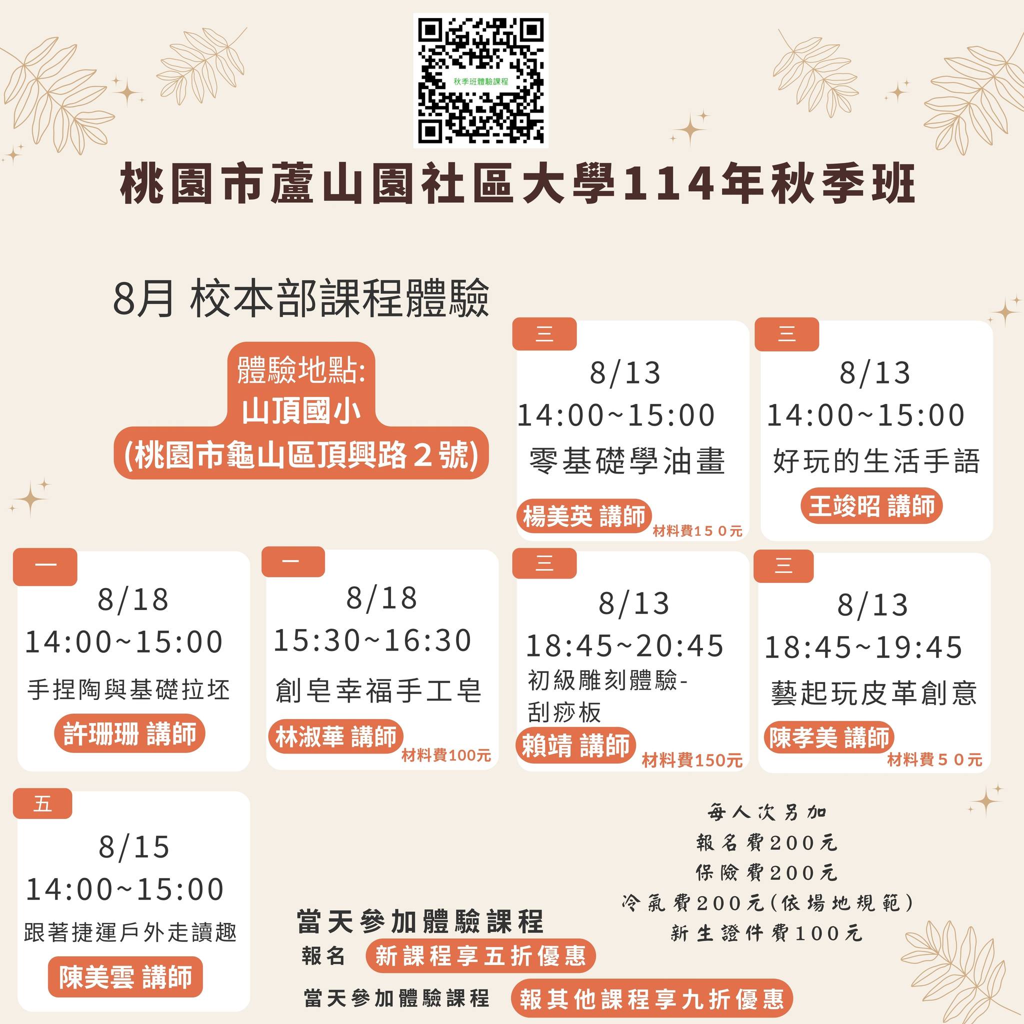下週的體驗課程即將開始,所有課程均照常辦理,請所有有報名學員依據上述時間準時前往上課喔!